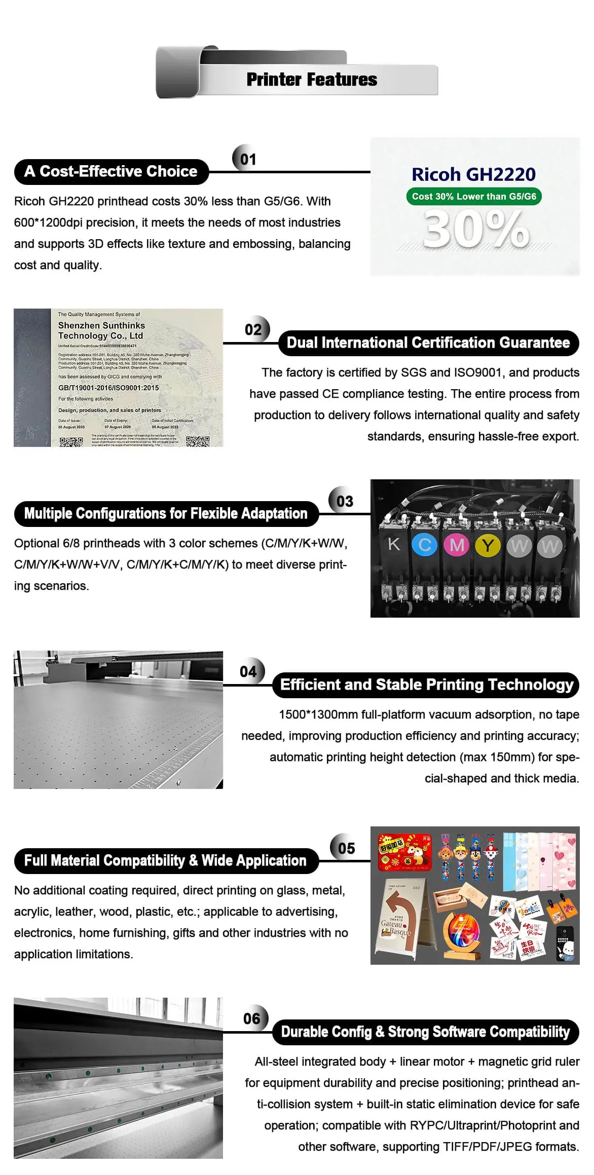 Industrial-Grade Precision (720*1200dpi) + Entry-Level Budget (30% lower cost with Ricoh GH2220 printheads).
